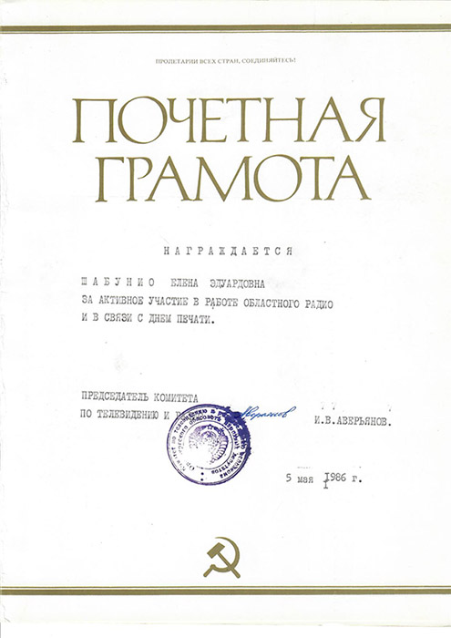 В 2002г. была награждена почетным знаком Министерства Культуры РФ "За достижения в культуре".
