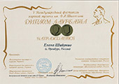 В 2005г. на 5-м Международном фестивале им. Шаляпина в г Ялта получила диплом Лауреата.